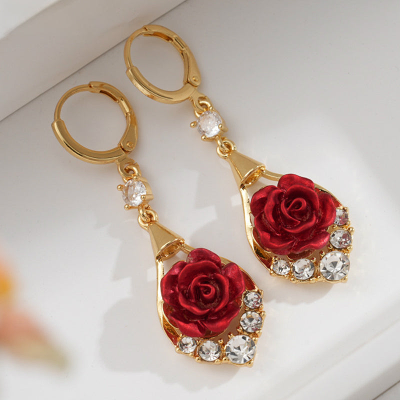 ELEGANT ROSE MOTIF - Centered around a beautifully crafted red rose, these earrings symbolize romance and passion. The intricate detailing adds a touch of timeless elegance, making any outfit feel more sophisticated and meaningful.