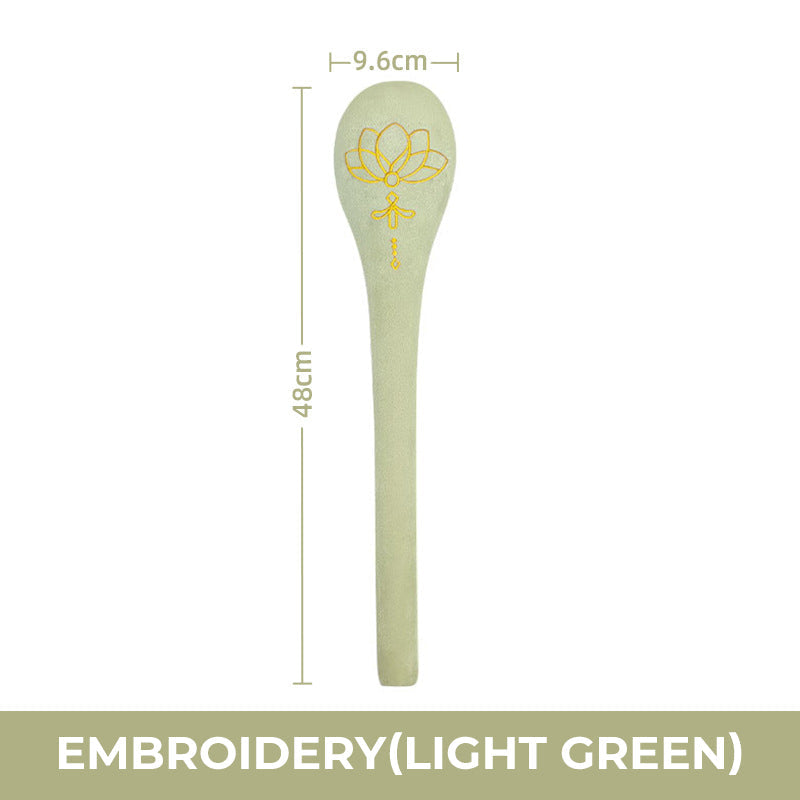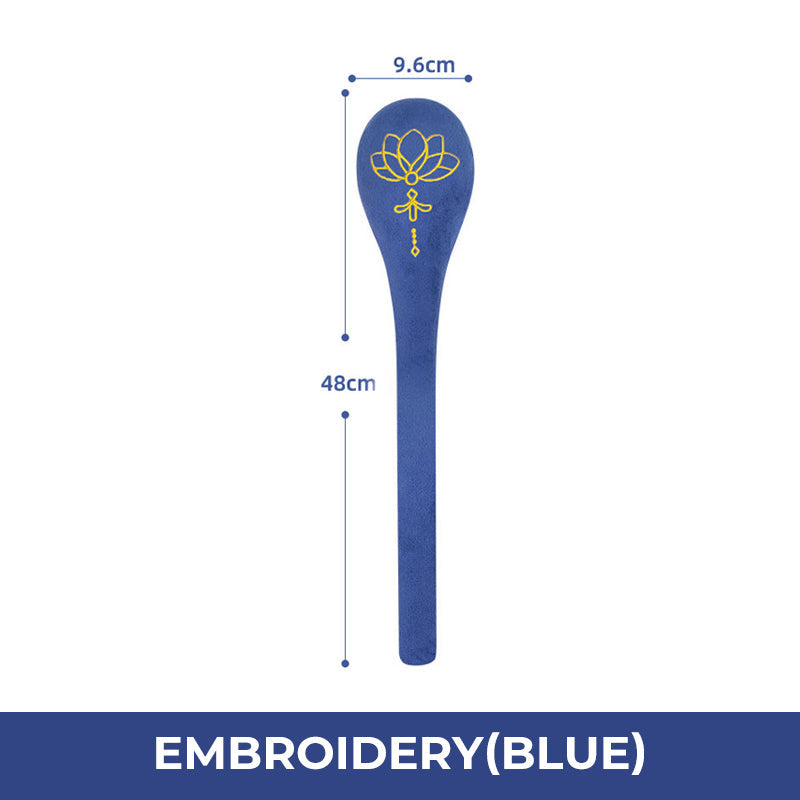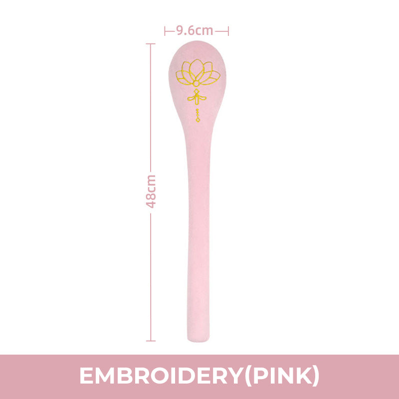 HANDCRAFTED ELEGANCE – Choose from delicate lotus embroidery or minimalist solid colors. The short plush exterior feels luxurious against skin, while the comfortable 48cm handle ensures comfortable self-massage.