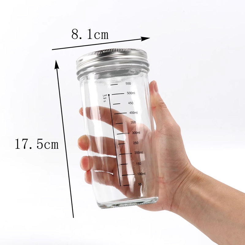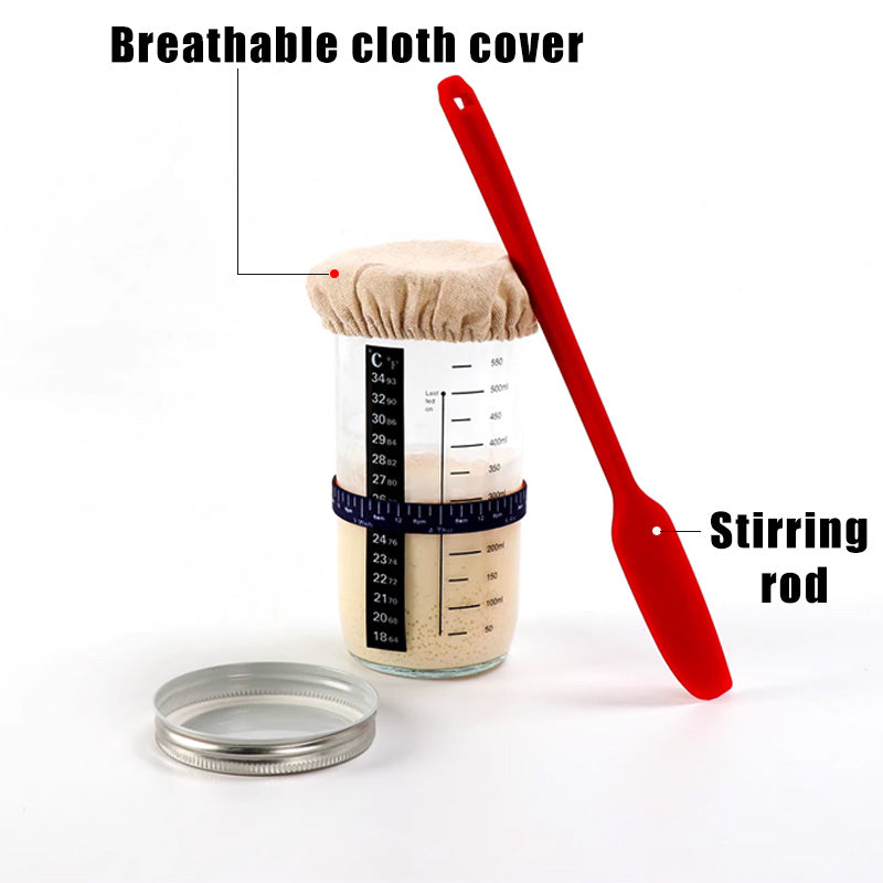 The Perfect Size and Shape - This sour dough maker jar is large enough (730ml) to provide sourdough starter for 3 loaves of bread while not taking up too much precious space in your fridge. Wide mouth & round, so it is easy to feed, stir & clean. In addition, the net weight of the jar & graduated amount line printed on the jar so you can easily know the weight of your starters.