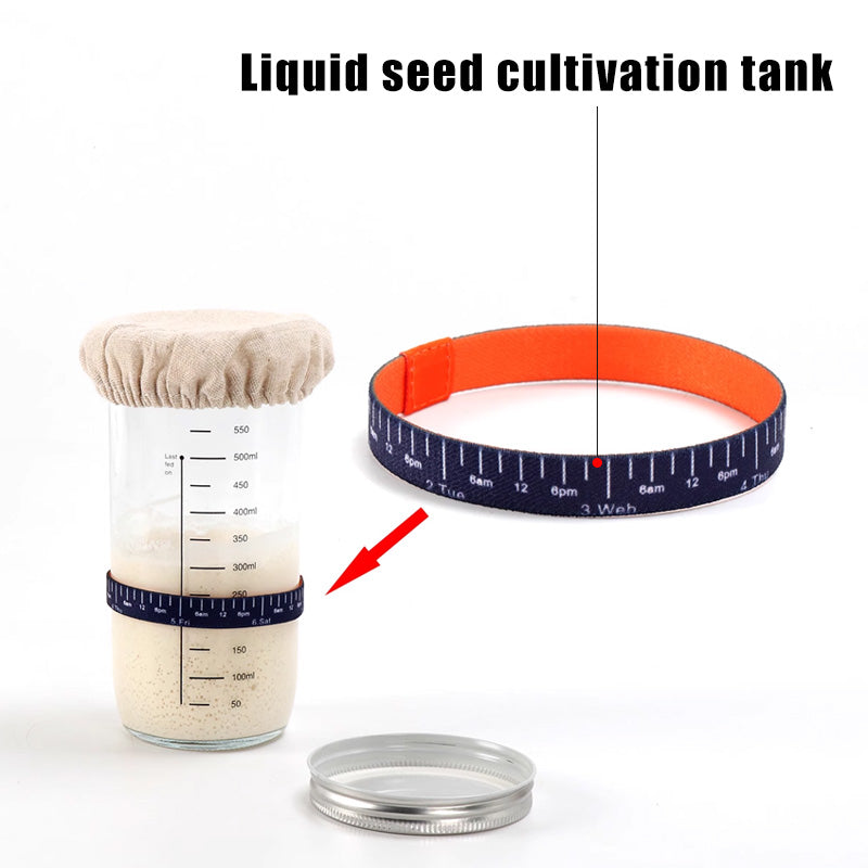 Never Forget The Last Time You Fed Your Starter - Elastic band marked with the days of the week & the time of day gives you an accurate indication of when you last fed your sour dough starter and the starting feeding level. Simply move the band sideways to indicate the time of feeding and up and down to mark you starting feeding level.